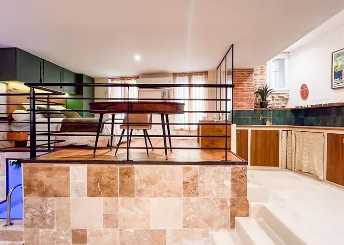 אזור מטבחון מאובזר זמין לשימוש האורחים. תחנת אוטובוס Bourrat זה כ-150 מטר על דירת דירות Amagat Loft Piscine Et Hammam.